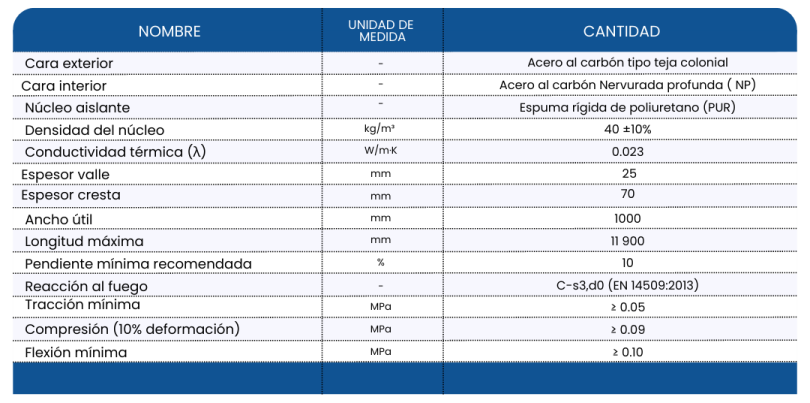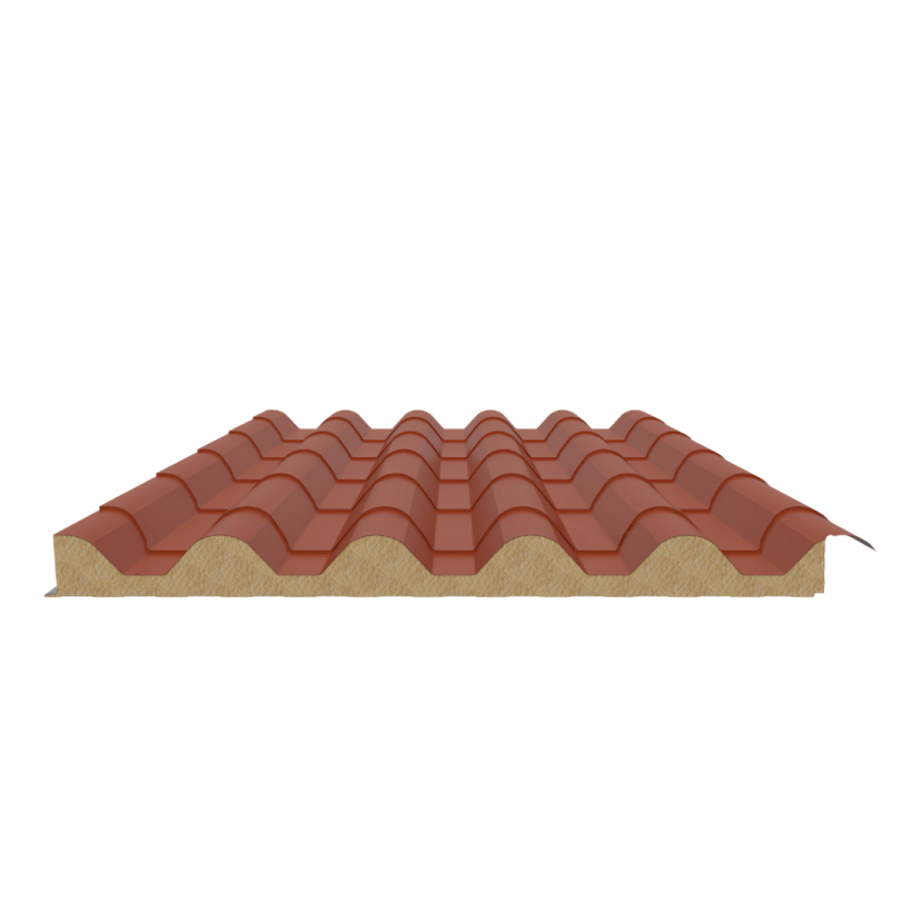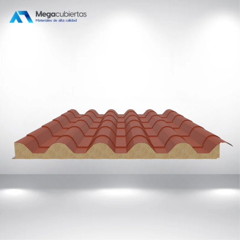 Panel isotérmico tipo teja colonial fabricado en acero galvanizado con núcleo de poliuretano (PUR), que ofrece excelente aislamiento térmico y acústico. Es una solución liviana, resistente al fuego y a la corrosión, ideal para cubiertas residenciales, comerciales e industriales, combinando estética tradicional con alto desempeño y durabilidad.